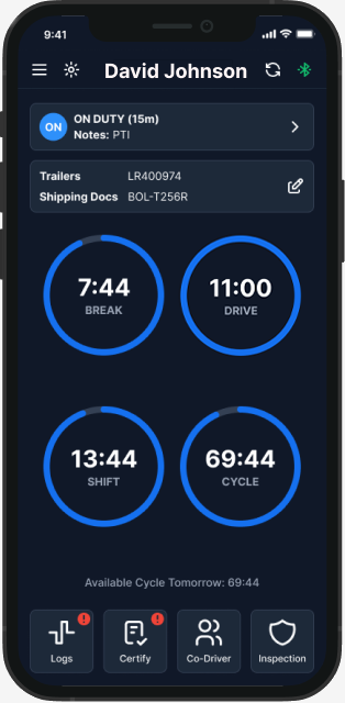 FMCSA certified ELD compliance solution provides drivers with large variety of tools to be on top of their Hours of Service.